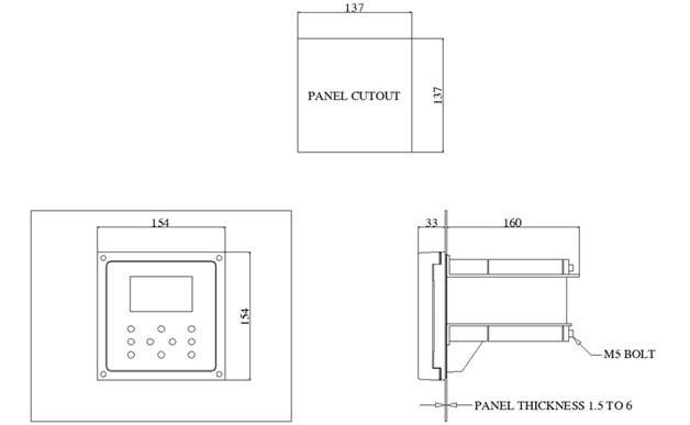Case Dimensions (mm) 154W X 154H X 180D ( Panel cutout 137W X 137H )